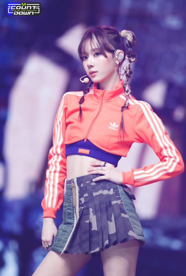 주황색 크롭 저지를 무대용으로 활용한 착장도 시선을 사로잡았다.