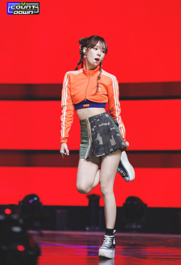주황색 크롭 저지를 무대용으로 활용한 착장도 시선을 사로잡았다.