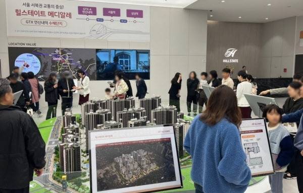 서울 은평구 대조동에서 분양한 ‘힐스테이트 메디알레’는 전용면적 84㎡ 분양가가 최고 15억원, 전용 59㎡도 12억원에 달했다. 평당 분양가가 약 4750만원으로, 은평구 아파트 평균 매매가격(3.3㎡당 2557만원)의 두 배 수준이다. 그럼에도 이 단지는 20일 1순위 청약에서 218가구 모집에 2408명이 몰려 평균 11대 1의 경쟁률을 기록했다.