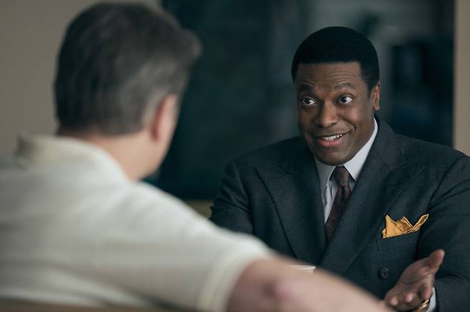 <에어>에서 크리스 터커는 나이키의 농구 부서 선수 책임자 '하워드 화이트'를 맡았습니다.