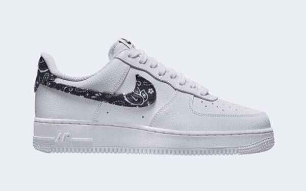 나이키 에어포스1 시리즈는 언제나 인기가 많다. 에어포스1 07 에센셜은 군더더기 없이 깔끔한 디자인의 제품으로, 2007년 리파인된 디자인을 기반으로 삼은 제품이다. 상당히 무거운 편이지만 신발의 중창이 두꺼워 키 높이 효과가 좋은 편이며, 어떤 코디에도 잘 묻어나는 친화력이 좋은 룩을 가진 아이템이다. 페이즐리 스우시 화이트 블랙 제품의 권장 소비자가는 129,000원이다.