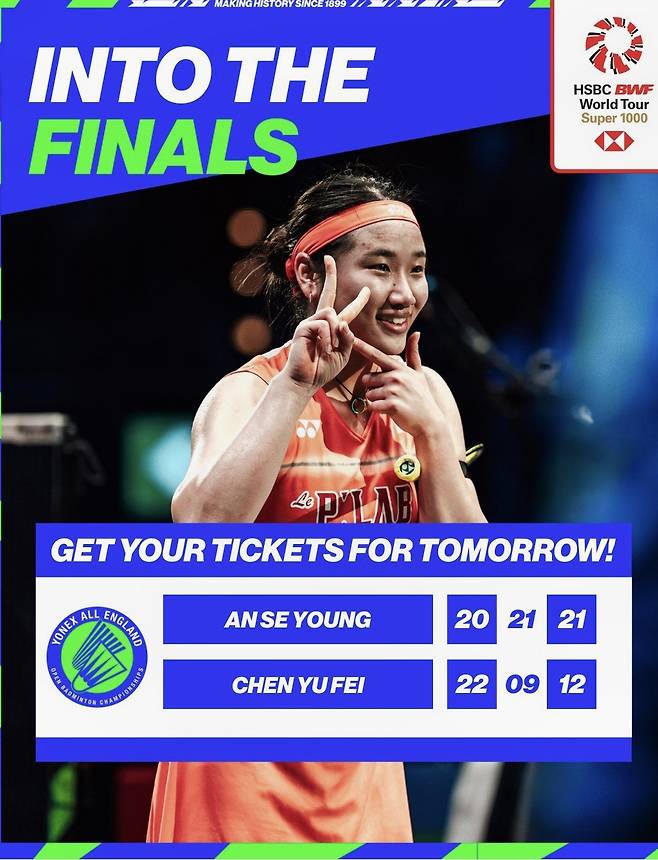 결승 상대는 세계 2위 왕즈이(중국)다. 안세영은 왕즈이를 상대로 통산 18승 4패라는 압도적인 우위를 점하고 있다. 이미 천위페이를 제압하며 기세가 정점에 달한 만큼, 안세영이 평소의 흐름만 유지한다면 한국 단식 선수 최초의 전영 오픈 2연패라는 대기록 달성은 무난할 것으로 보인다. 과거 박주봉, 정명희 등 복식 전설들만이 도달했던 전영 오픈 연속 우승의 계보를 이제 안세영이 단식에서 이어가려 한다.