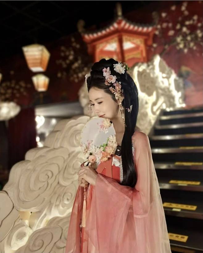 이다해는 수묵화처럼 그라데이션된 장미빛 치마와 은은한 광택 디테일이 어우러진 당나라 전통 의상을 입고 등장해 마치 궁 안을 걷는 것처럼 신비롭고 고혹적인 분위기를 자아냈습니다.