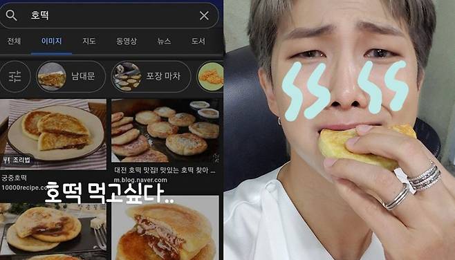 멤버 RM은 '밤 10시에 호떡이 먹고 싶어서 아버지와 함께 일곱 군데를 돌았다.', '파는 곳이 없길래 포기하려던 찰나 7번째 곳에서 호떡을 발견할 수 있었다'라며 게시글을 업로드했습니다.