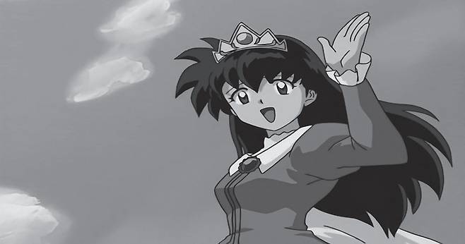 6. 제시된 사진은 일본 애니메이션 <이누야샤>의 캐릭터가 인사하는 장면이다. “안녕히 계세요, 여러분! 전 이 세상의 모든 굴레와 속박을 벗어던지고 제 행복을 찾아 떠납니다”라는 대사와 명랑한 목소리가 어우러져 유쾌하게 작별 인사를 고하고 싶은 상황에 자주 쓰이는 밈이 됐다. ①은 데이팅 리얼리티 쇼 <솔로지옥>에서 MC 홍진경이 한 말이다. ‘웃긴 상황이 하나도 없다’는 말과 달리, 커다란 스마일이 그려져 있는 니트를 착용하고 있어 웃음을 유발했다. ③은 예능 프로그램 <복면가왕>에서 참가자의 정체가 공개되자 패널로 출연한 신봉선이 한쪽 팔은 위로, 다른 한쪽 팔은 아래로 내린 기묘한 자세를 취한 채 놀란 장면에서 비롯된 밈이다. 그의 자세와 ‘상상도 못한 정체’라는 자막이 화제를 모으면서 인기 밈이 되었다.