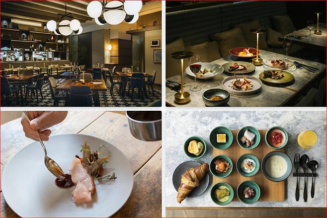 1층 레스토랑은 아침에는 조식 공간, 저녁엔 멋스러운 바&레스토랑으로 운영되는데, 일본식과 서양식 메뉴가 모두 제공돼 입맛에 맞게 선택할 수 있었어요. 저는 현장에서 조식을 추가했는데, 깔끔한 플레이팅과 맛에 만족했습니다.