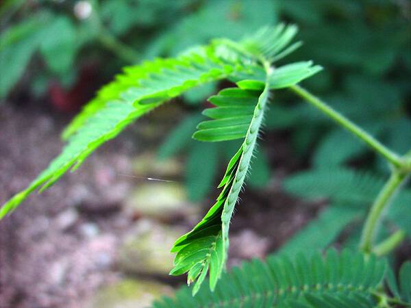 민감, 적으로부터 자신의 보호를 위해 잎이 반으로 접혀 알아채지 못하게 하는 전략이다. 살아있는 건 모두 자극에 반응한다. 반응하지 않으면 죽은 몸이다.