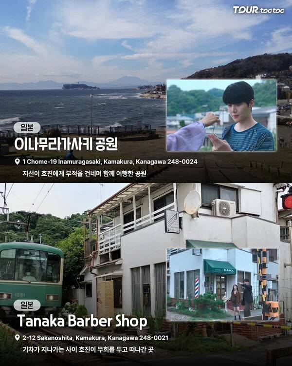 지선이 호진에게 부적을 건네주며 여행을 함께했던 장면의 배경인 이나무라가사키 공원은 가마쿠라 해안가를 따라 위치한 작은 공원입니다.