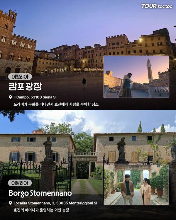 호진의 어머니가 운영하는 와이너리로 등장하는 Borgo Stomennano은 토스카나의 전형적인 풍경이 펼쳐진 와인 농장입니다.