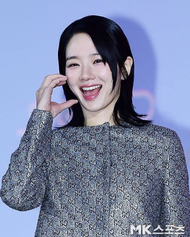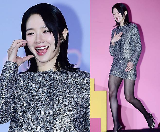 박규영은 반짝이는 패턴이 돋보이는 실버 컬러의 미니멀한 투피스를 선택해 시선을 사로잡았습니다.