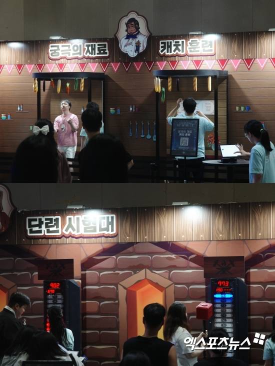 체험형 게임 콘텐츠도 준비됐다. 이용자는 타이밍과 순발력을 요구하는 '궁극의 재료 캐치 훈련', 파워를 테스트하는 '아이데른의 단련 시험대', 정확한 조준이 요구되는 '카스타네아의 파이널 샷', 공을 활용한 '스튜어트의 파이어볼 시험' 등 총 4개의 체험을 즐겼다.