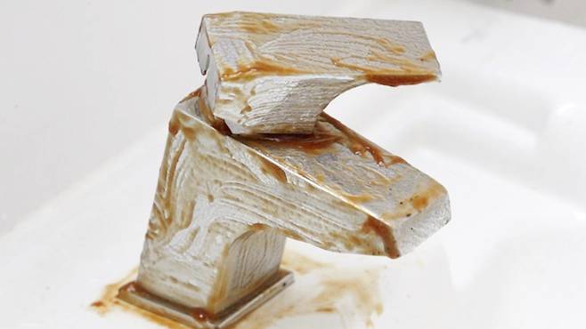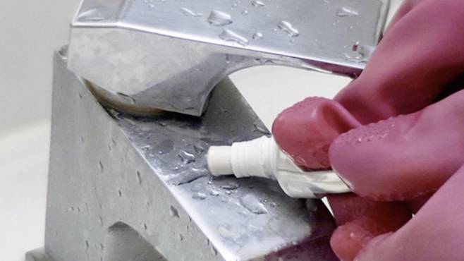 치약으로 이를 닦으면 반짝반짝 깨끗해지는데요. 바로 연마제 성분으로 수도꼭지도 마찬가지로 아주 반짝반짝 해진 모습을 볼 수 있어요.