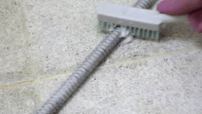 이외에도 물때가 끼기 쉬운 샤워기 줄에도 발라 닦으면 아주 깨끗해진 모습을 볼 수 있어요.