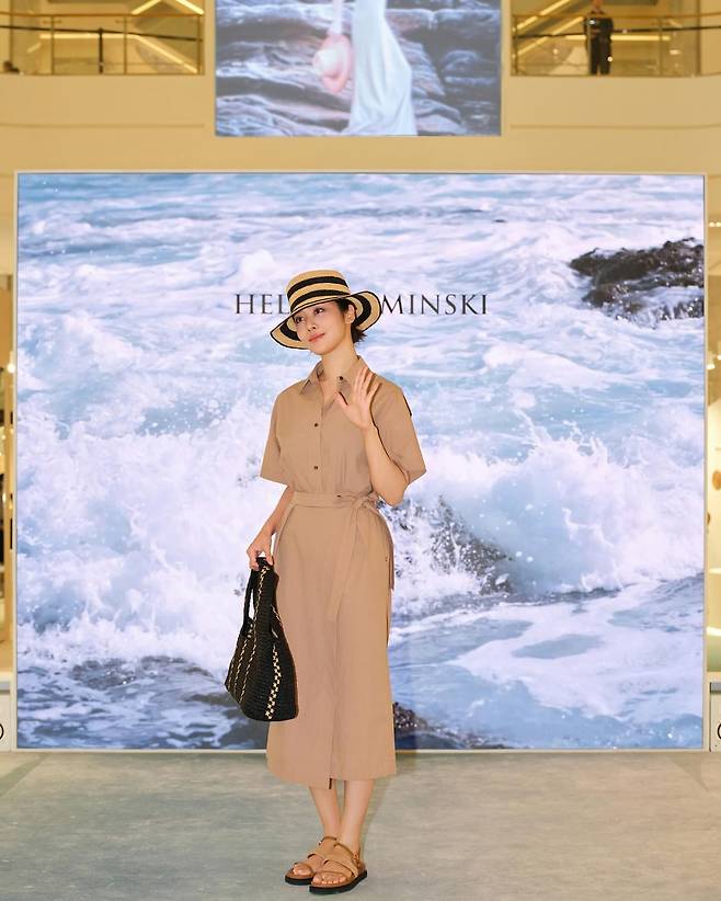 ##헬렌카민스키 행사에서 선보인 베이지 원피스 룩