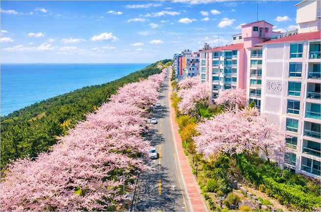 복잡하지 않고 비교적 한적한 분위기라 조용한 벚꽃 산책을 원한다면 추천합니다. 바다와 가까워 공기마저 상쾌합니다. 사진을 찍어도 배경이 단정해 깔끔한 장면이 나옵니다.