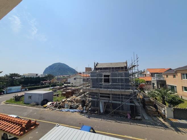 지금 우리가 구입한 땅은 일단 오래전부터 단독 주택 마을이 형성된 곳으로 조용하고, 클린하우스도 단지 내에 있었고, 걸어서 유치원, 초, 중학교까지 등교 가능. 그리고 남편의 고향이라 육지에서 온 제가 시댁 가족들로부터 도움받을 수 있는 부분도 많아서 결정하게 되었어요. 그리고 제주도 다운 풍경은 제가 여기 9년째 이 동네에 살고 있지만 여기만큼 산방산, 한라산 조망이 다 되는 멋진 동네는 없다고 자부합니다. 비싸도 처음 마음 그대로 이 동네로 결정. 남편은 여전히 땅에 너무 돈을 많이 투자한 거 같다고 하지만 이 동네에 평생 살 수 있다는 거 자체가 저에겐 너무 행복입니다.