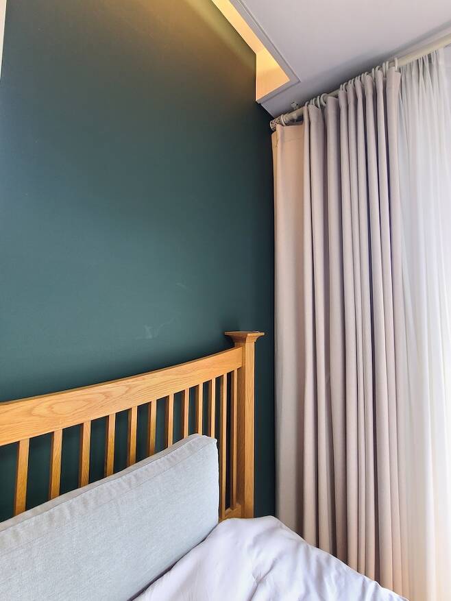 침대를 골라 놓고 안방 벽지를 초록색으로 골랐어요~ 벽지와 침대 프레임이 참 잘 어울려서 볼수록 마음에 드는 부분 중에 하나랍니다.