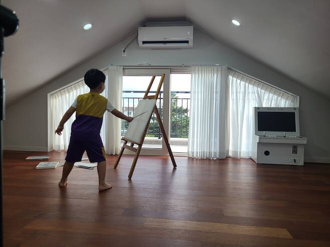 저희 가족은 저녁 먹고 나서는 거의 2층에서 생활을 많이 하는 패턴이에요. 아이가 일찍 자기도 하고 아직 저희와 함께 자기 때문에 저녁에 아이를 재우러 같이 침실에 올라가서 잠들 때까지 2층 침실에서 시간을 계속 보내요.