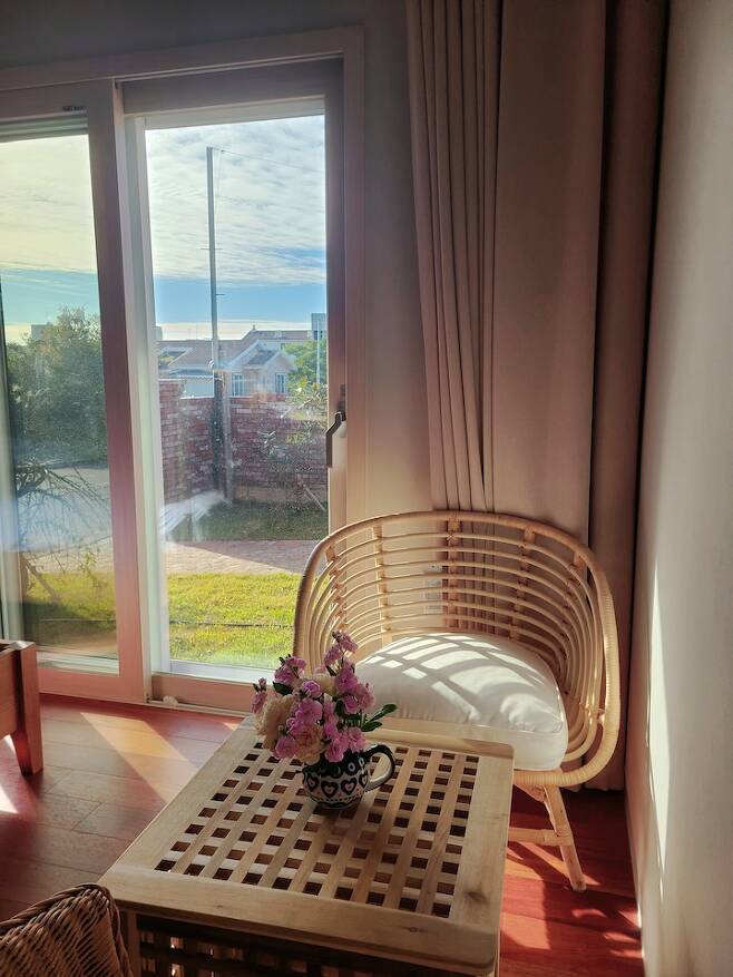2층에서 보는 산방산 뷰가 정말 기가 막히거든요. 지인들이 오면 가장 부러워하는 공간이기도 합니다.
