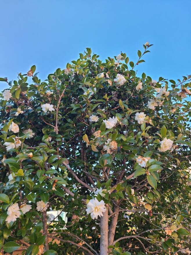 계절마다 그 계절에 맞는 꽃이 필 수 있게 조경을 했고요. 요즘엔 저희 집 하얀 동백, 빨간 동백이 아주 예쁘게 피었답니다.