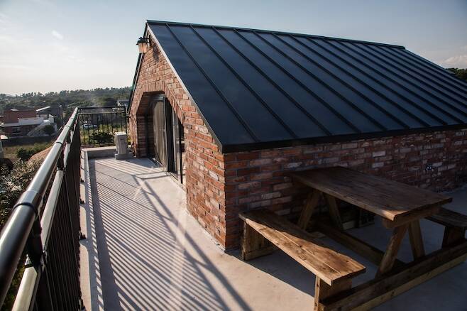 다락방에서 외부 테라스로 나갈 수 있게 문도 내었고요, 밖에 나가면 한라산이 조망가능하게 설계했습니다.