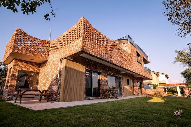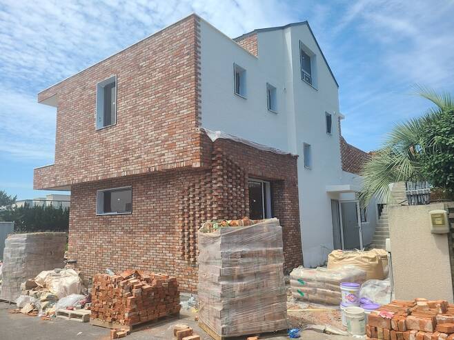 앞쪽은 전부 빨간 벽돌로 마무리했고요,