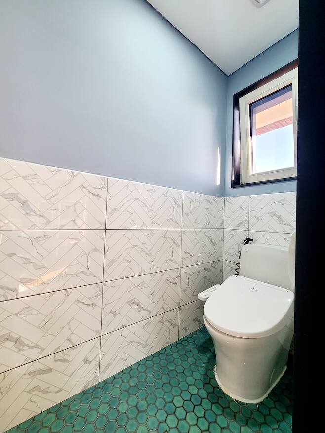 집을 지으면서 화장실은 어느 곳이든 한 군데는 꼭 건식으로 하고 싶었어요. 예~전에 가봤던 멋진 펜션에서 거실과 경계 없이 똑같이 마룻바닥으로 이어진 건식화장실을 보았는데, 그게 제게 굉장히 임팩트 있었거든요. 그래서 언젠간 나도 집을 지으면 꼭 마룻바닥을 깔고 화장실을 건식으로 설계해야겠다 다짐했어요.