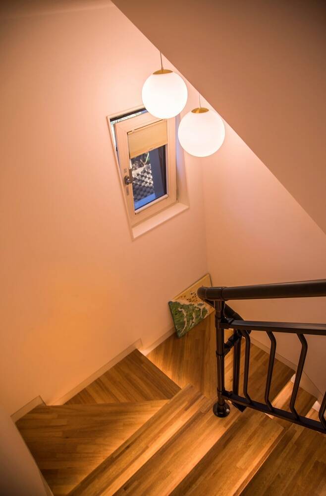 특히 계단 밑 조명은 제가 꼭 해달라고 욕심을 냈던 부분인데 설치를 완료해 놓고 나니 정말 예쁜 것 같아요. 계단 밑 조명도 계단 하나하나에 전기선을 내고 조명을 달아야 되는 번거로운 부분이 있어서 아주 귀찮은 작업일 텐데도 열심히 전기선 따고 설치해 주신 기사님 정말 감사합니다. 달아놓고 나니 안 했으면 어쩔 뻔했나 싶을 정도로 우리 집 킬링 포인트예요!
