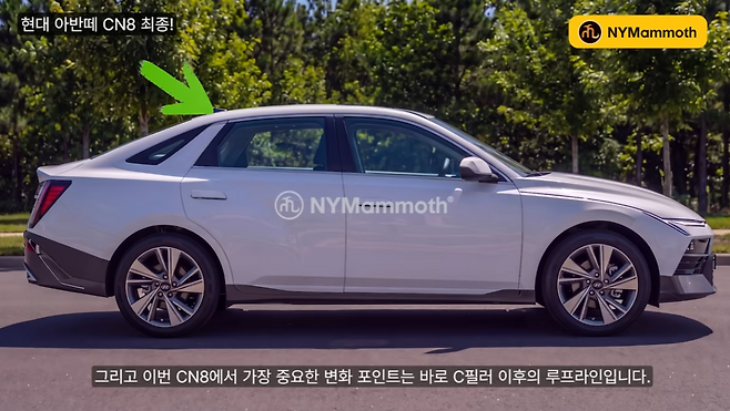 측면은 기존 아반떼의 캐릭터 라인을 유지하면서도 보다 절제된 형태로 다듬어질 전망이다. 특히 C필러 디자인은 최근 그랜저에서 보여준 복고적 요소를 결합해 세단 특유의 비율감을 강조하는 방향으로 변화할 전망이다.