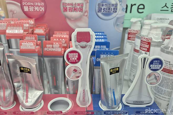 다이소에서 인기 많았던 리들샷이 이와 비슷한 원리인데, 리들샷을 이을 새로운 제품이 다이소 등장했다. 바로 '닥터오라클 큐어소나 리쥬코드 더마롤러'다. 출시하자마자 매장과 온라인 몰에서 많은 품절을 일으키며 화제를 모았다.