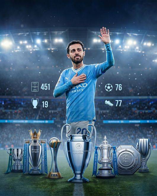 기록도 화려하다. 실바가 지난 9년간 맨시티 유니폼을 입고 들어 올린 트로피만 프리미어리그 6회, 유럽축구연맹(UEFA) 챔피언스리그(UCL) 1회, FA컵 2회, 카라바오컵 5회, 커뮤니티 실드 3회, FIFA 클럽 월드컵 1회, UEFA 슈퍼컵 1회 등 총 19개에 달한다. 2022-2023시즌 트레블의 중심에도 그가 있었다.