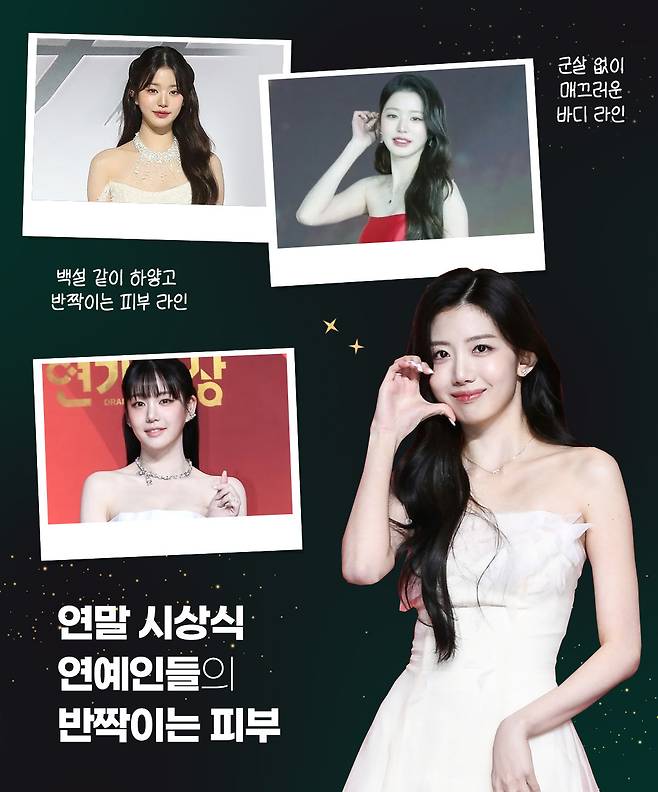 연말 시상식 레드카펫에 오른 연예인들의 공통점은 군살 없이 정돈된 바디라인과 조명 아래서 더욱 빛나는 하얗고 반짝이는 피부다. 과하지 않은 윤기와 매끈한 피부결은 드레스의 완성도를 높이며, 단 몇 초의 스포트라이트 속에서도 시선을 사로잡는다.