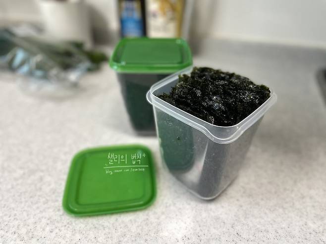 저는 깊은 통은 김을 세워서 보관해두는데 꺼내 먹기도 편하고 좋아요.