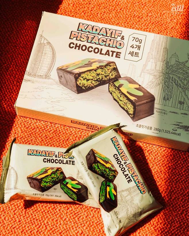 두바이 초콜릿의 원조는 ‘픽스 디저트 쇼콜라티에’라는 아랍 에미리트 초콜릿 제조사의 초콜릿 디저트입니다. 초콜릿 안에 필링이 채워져 있는 게 특징인데, 이 필링이 평범하지 않아요. 진하고 고소한 피스타치오 크림과 볶은 ‘카다이프’가 듬뿍 들어갑니다. ‘카다이프’는 튀르키예식 국수인데, 소면보다도 얇은 면이에요. 이 면을 볶은 뒤 잘게 잘라서 넣어 코코넛 플레이크처럼 바삭한 식감을 만들어 줘요.‘바삭한… 초콜릿…?’ 의구심이 들 수 있지만, 킷캣이나 크런키를 생각하면 납득이 갈 겁니다.