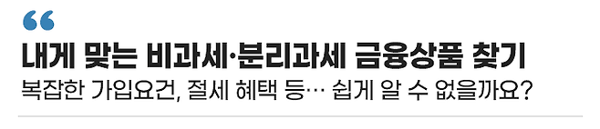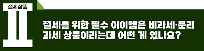 그리고 한 가지 상품에 비과세와 분리과세 방식이 모두 적용되어 세금을 아끼면서 금융소득종합과세에도 큰 도움이 됩니다.