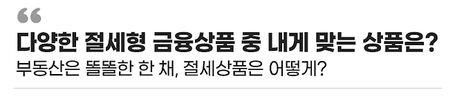 다양한 절세형 금융상품들의 특성과 혜택을 잘 이해하시고 본인에게 알맞은 절세상품을 선택∙활용하셔서, 세금을 아끼고 자산도 효과적으로 늘리시기 바랍니다.