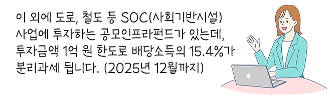 농협, 수협 등의 조합에 일정 금액을 지분 형태로 출자하거나 예탁하는 경우에는 2025년 12월 31일까지는 비과세 혜택이 있으며, 2026년 1월 1일 이후에도 분리과세 혜택이 있습니다.