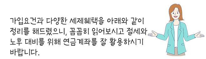 또한 운용 시 발생하는 이자나 배당소득에 대해서도 연금 수령까지는 소득세를 부과하지 않는 과세이연 효과까지 누릴 수 있습니다.