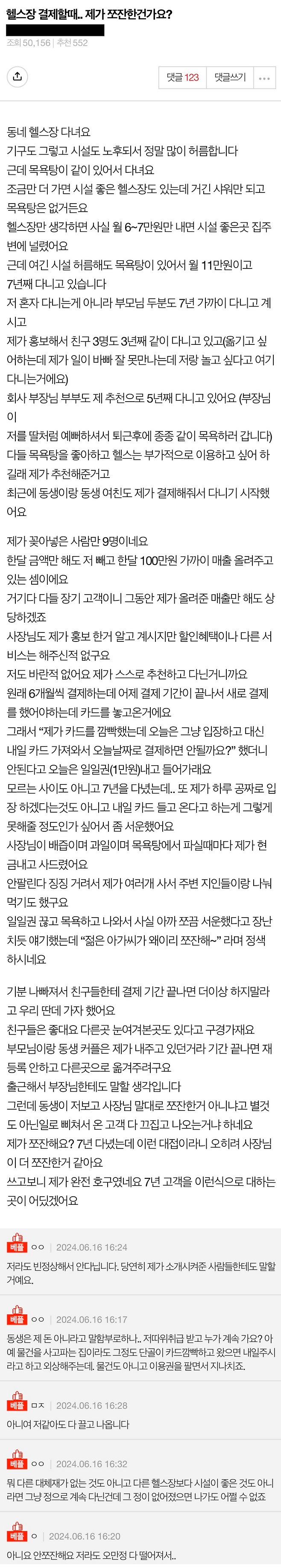 한 여자가 7년 다닌 헬스장에서 서운했던 이유