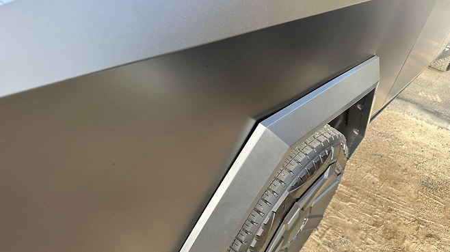 그러나 기대와 반대로 무광 블랙 사이버트럭은 치부를 드러내기도 했다. 잘못 정렬된 차체 패널로 인해 제대로 조립되지 않은 것처럼 보였기 때문이다.