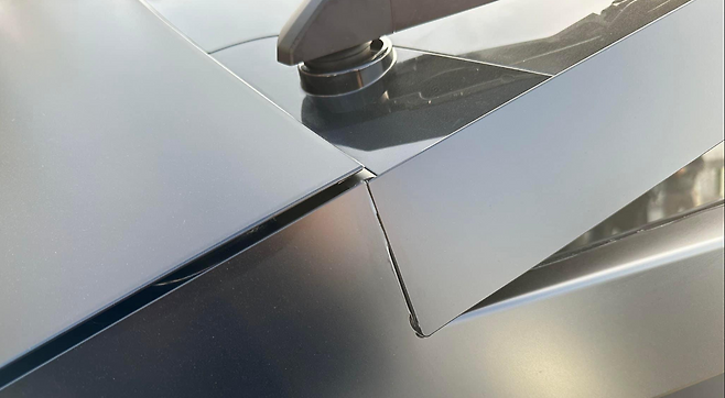 이러한 불량은 절대로 고객 배송 시점에 나타나서는 안 될 문제다. 그러나 이 특별한 무광 블랙 사이버트럭은 초기 프로토타입에 래핑을 입힌 차량일 수도 있어 섣부른 판단은 금물이다.