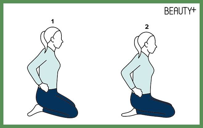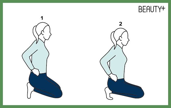 1 발등이 바닥을 향한 상태에서 무릎을 꿇고 앉는다.