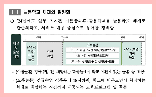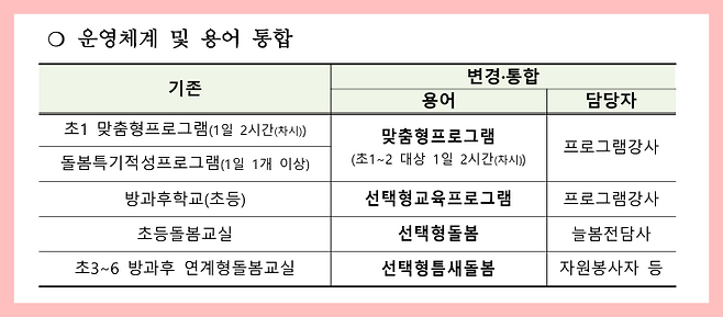 기존의 초등 방과후, 돌봄을 통합 개선하여