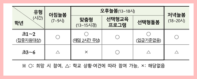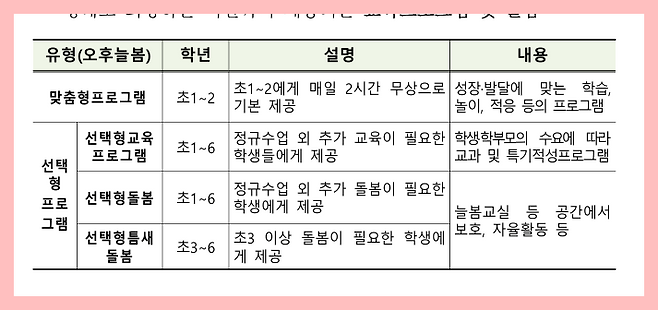 💡그런데 제가 알고 있는 작년부터 시행된 늘봄은 방과후 같은 수업도 한다고 들었는데 이것 때문에 돌봄 늘봄 차이 헷갈렸거든요?