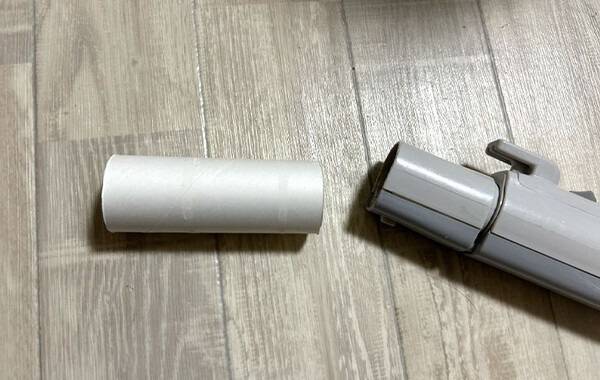 구멍을 낸 휴지심, 창틀 먼지 흡입에 딱 맞는 도구