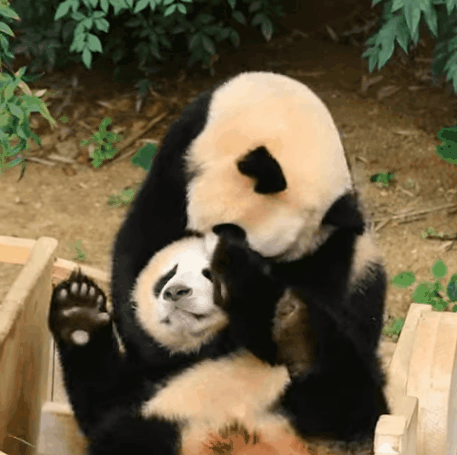 영상 속에서 루이바오는 동생 후이바오에게 찰싹 달라붙어 껴안고, 얼굴을 비볐습니다. 바오 팬들이 사랑스러운 아기 판다 자매를 깨물어주고 싶은 것처럼, 루이바오도 귀여운 후이바오를 깨물어주고 싶은 걸까요? 루이바오는 후이바오를 꼭 껴안고서 귀와 이마를 앙앙 물기도 했죠.