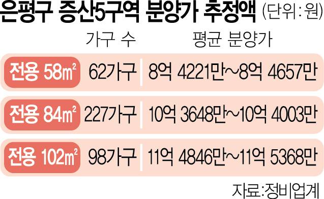 서울 은평구 수색·증산뉴타운의 증산5구역의 국민평형(전용면적 84㎡) 일반 분양가가 10억 원선에 잠정 책정됐다.