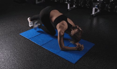 팔뚝으로 몸을 지탱하여 팔꿈치 플랭크 자세를 만듭니다. 오른쪽 무릎을 가슴 쪽으로 당겼다가 되돌리고, 이어서 왼쪽 무릎도 동일하게 당겼다가 되돌립니다. 이 동작을 반복합니다.