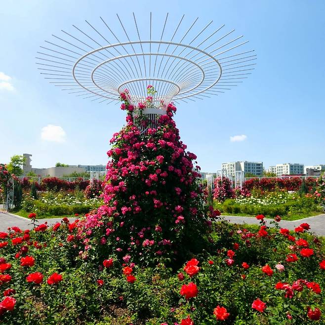 현재는 무려 5.45km에 달하는 국내 최대 규모의 장미터널이 펼쳐져 장미 애호가들의 성지로 자리 잡았는데요. 올해는 5월 16일 금요일부터 24일 토요일까지 다채로운 품종의 흐드러진 장미를 만나보실 수 있습니다.