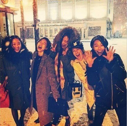 공개된 사진에는 유리와 배우 전혜빈, 박수진, 가수 채연, 가희가 나란히 내리는 눈을 맞으며 해맑은 미소를 짓고 있습니다!